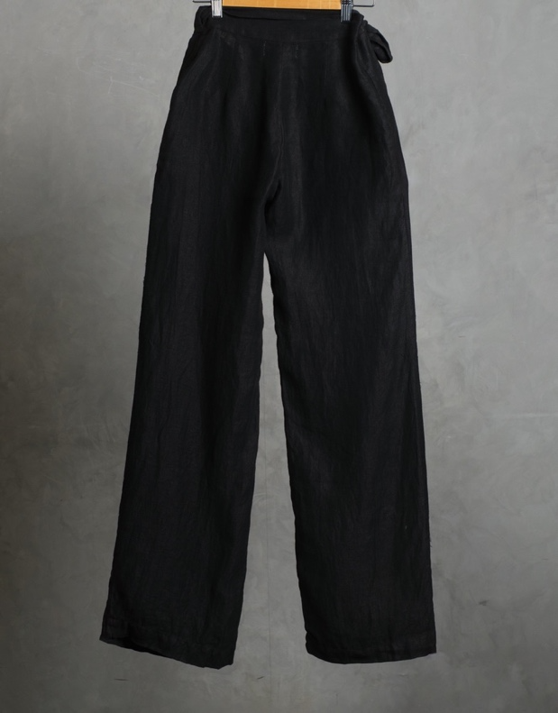 The AMINA Pants are cut from French linen with a refined, narrow silhouette that lengthens the leg. Designed with a built-in belt tie that wraps across the waist and secures at the front in a bow, they bring both elegance and ease to everyday dressing. Offered in pure Snow White or naturally dyed Apache Black, the AMINA reflects MALA’s philosophy of understated sophistication — timeless, versatile, and effortlessly stylish.