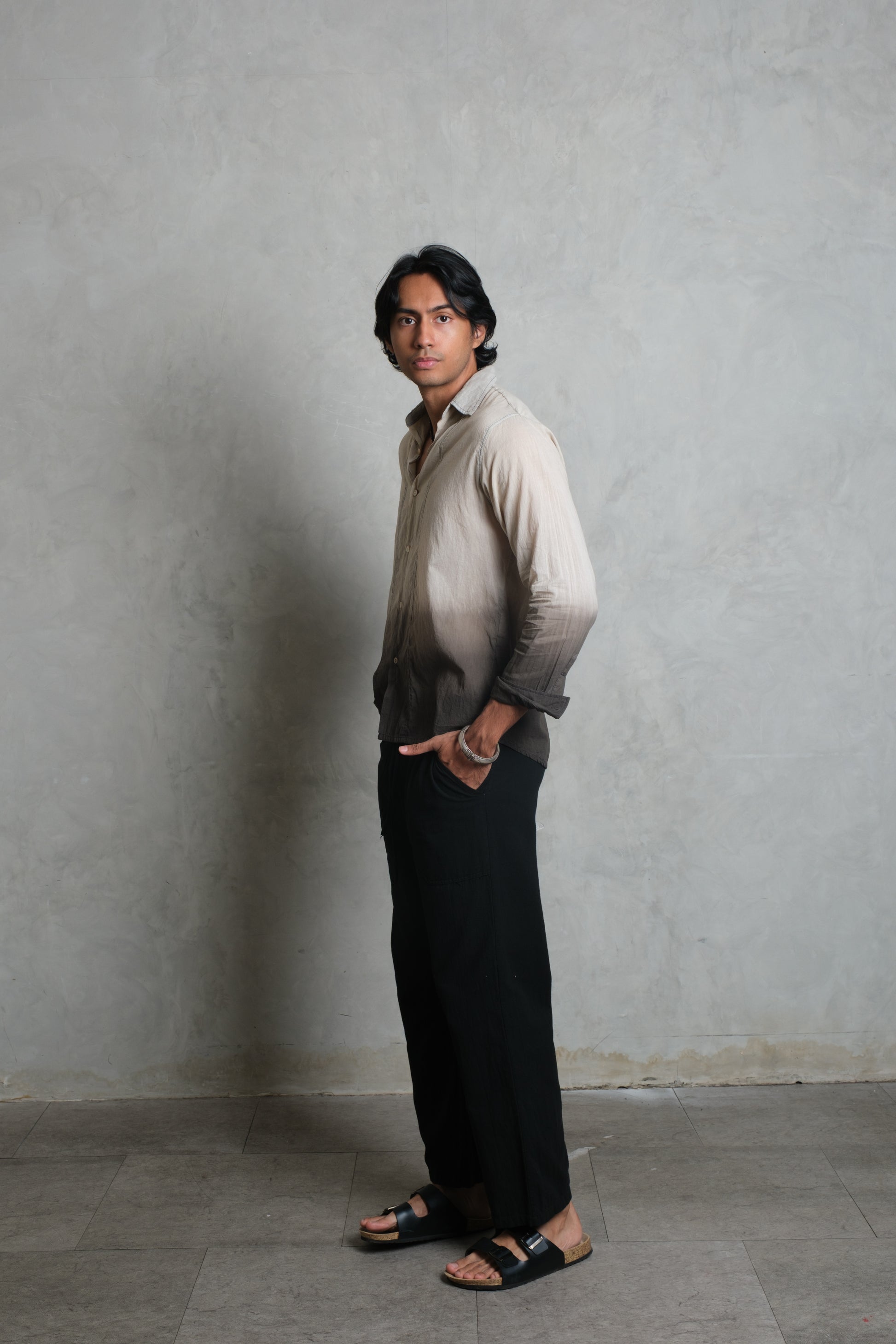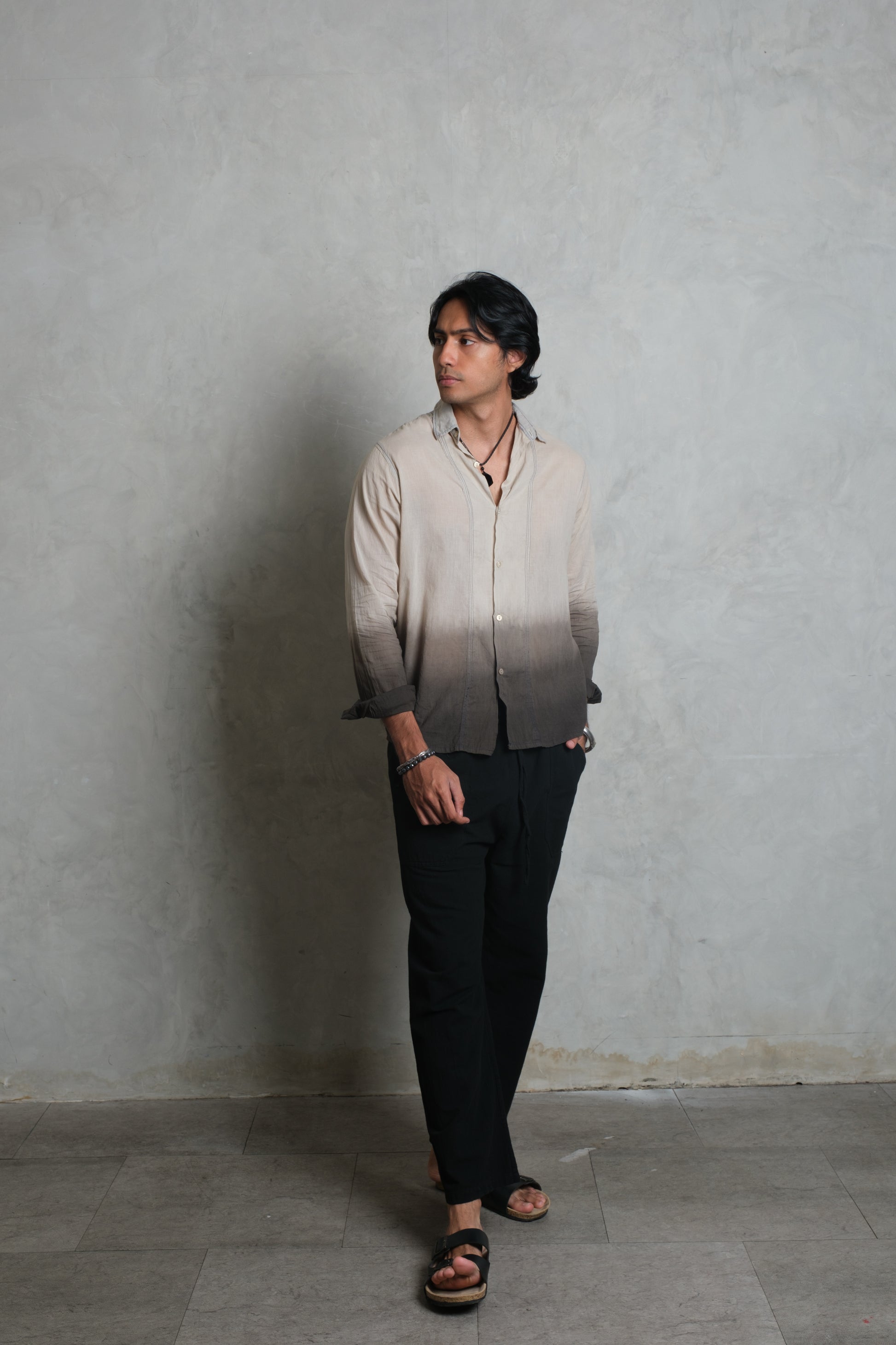 The ARAMBOL Shirt is crafted from organic light cotton sourced from northern India, a region renowned for its rich textile heritage. Each piece is cut and sewn by cottage-industry artisans in southern Bali, where traditional craftsmanship is preserved. The fabric is then naturally dyed in northern India, using plant-based pigments to achieve its soft ombré effect. The result is a shirt that carries the artistry of two cultures — India’s heritage and Bali’s handcraft — making every piece unique.