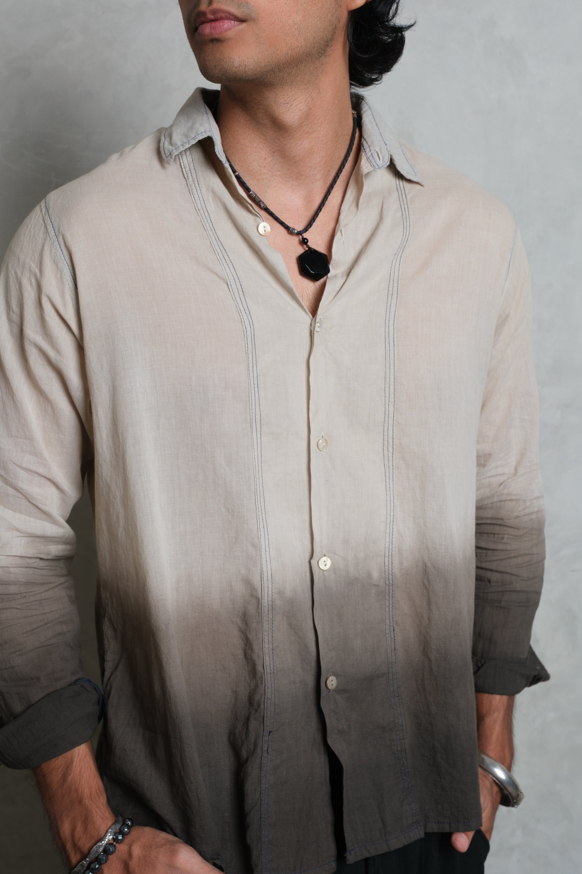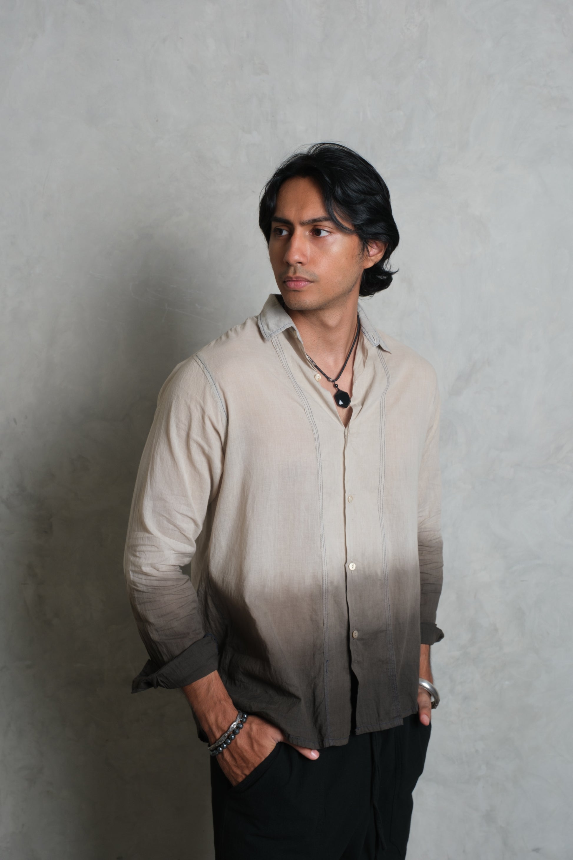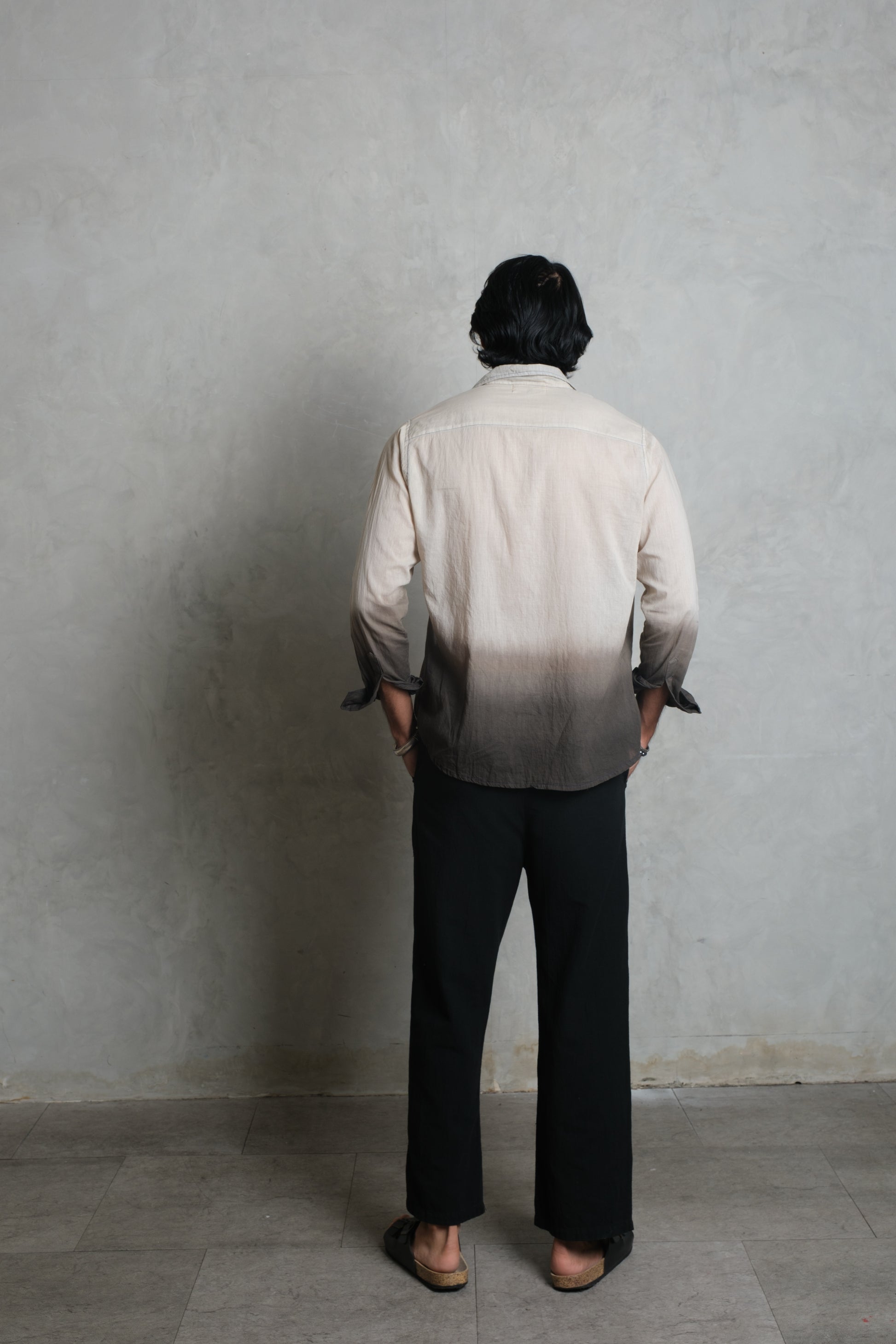 The ARAMBOL Shirt is a relaxed long-sleeve design with a laid-back yet refined edge. Cut with a straight silhouette and classic button-down front, it pairs casual comfort with understated style. Crafted in organic cotton, it features a natural plant-pigment ombré dye effect, fading softly from light to dark. Lightweight and versatile, the ARAMBOL can be worn open over a tee or styled buttoned up — an effortless piece for both day and evening.