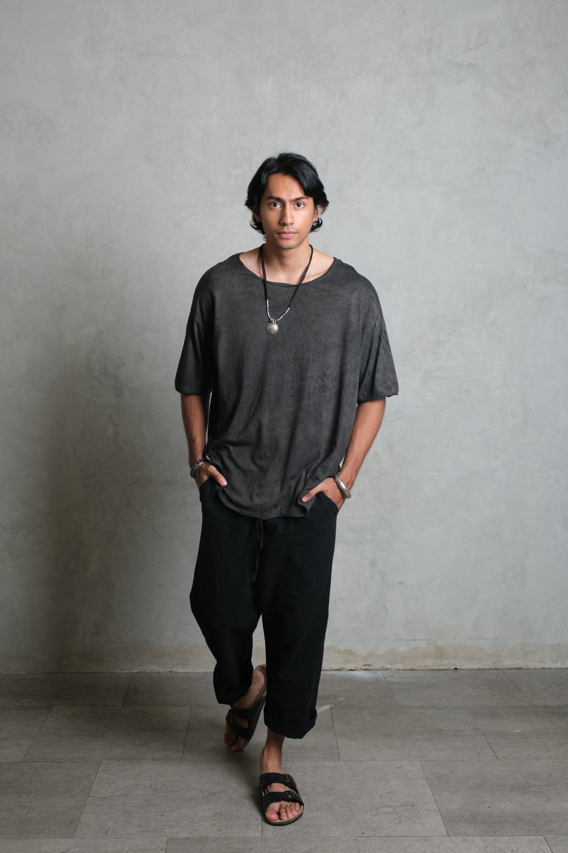 The FLOW Pants are made from 100% organic cotton sourced in Bali, selected for its natural softness and breathability. Each pair is cut and sewn by cottage-industry artisans in southern Bali, where traditional craftsmanship is preserved. The fabric is then naturally dyed with plant-based pigments in northern Bali, giving the pants their depth of tone and subtle variations. Every piece is unique, carrying the spirit of Bali in its making.