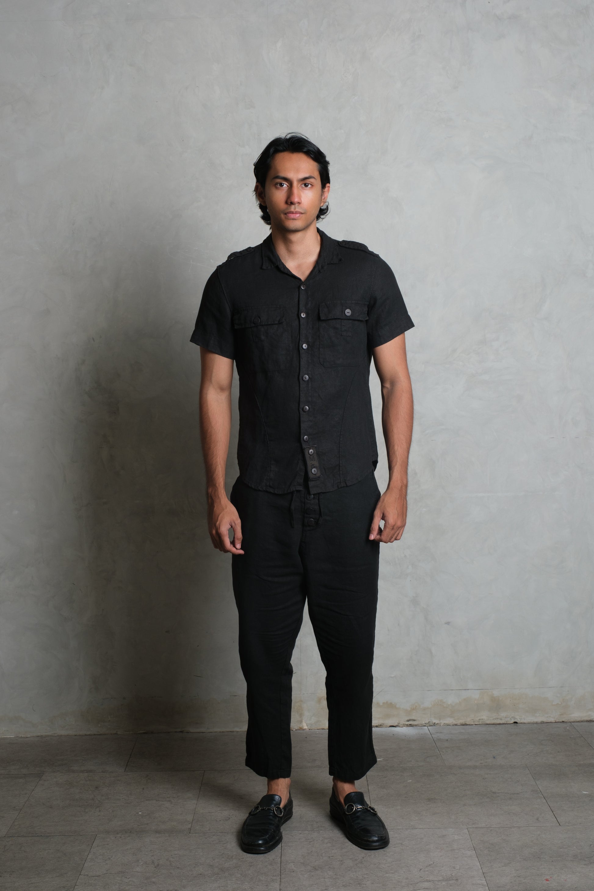 The JAYA Shirt is crafted from fine French linen, a fabric long celebrated for its strength and breathability. Inspired by classic Italian military tailoring, it is hand-cut, sewn, and detailed by artisans in Bali. Each shirt is naturally dyed using plant-based pigments, a slow process that connects the garment to the rhythms of the island known as the Land of the Gods. The result is a piece that merges European design influence with Balinese craftsmanship, making every shirt a distinctive expression of strength and style.