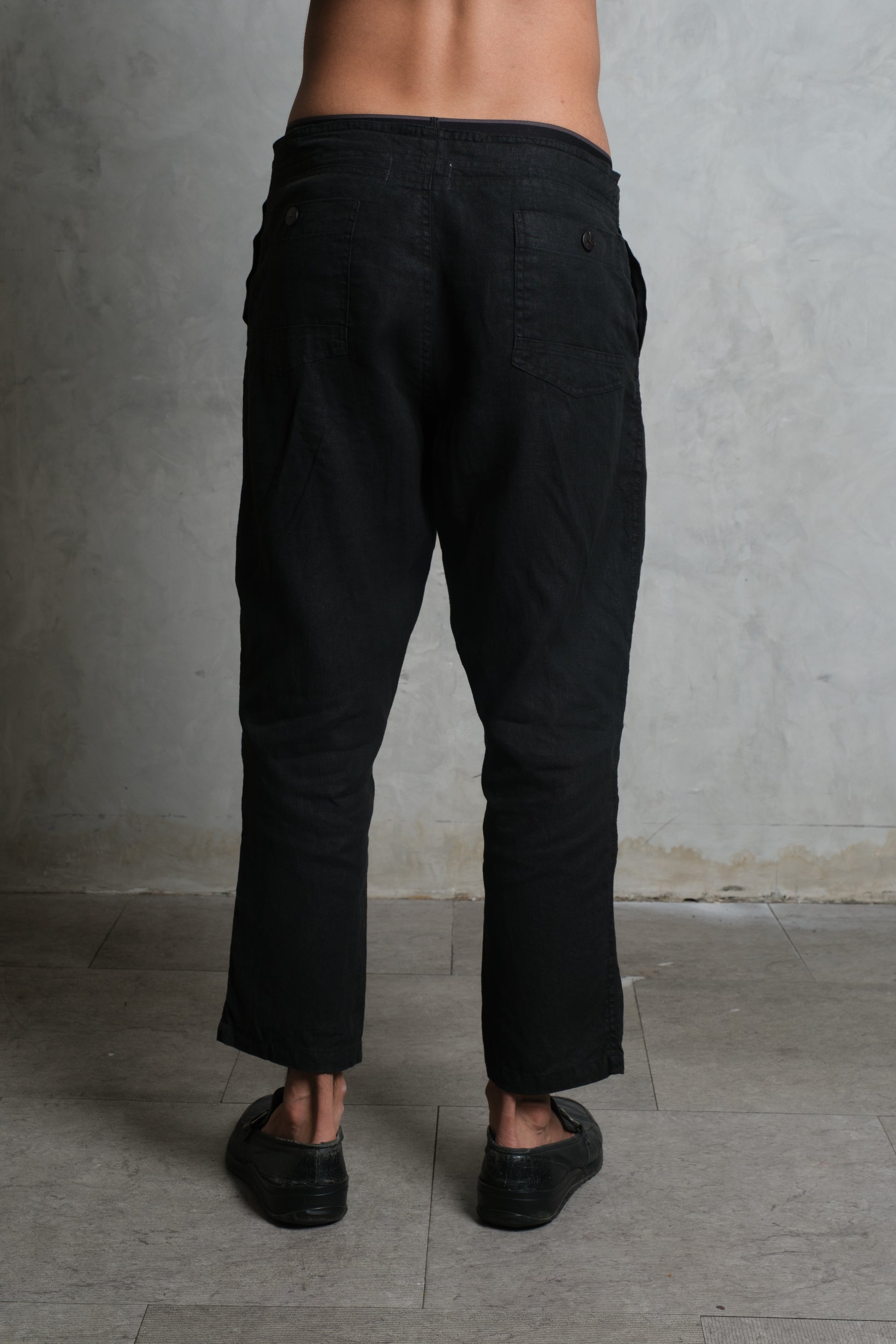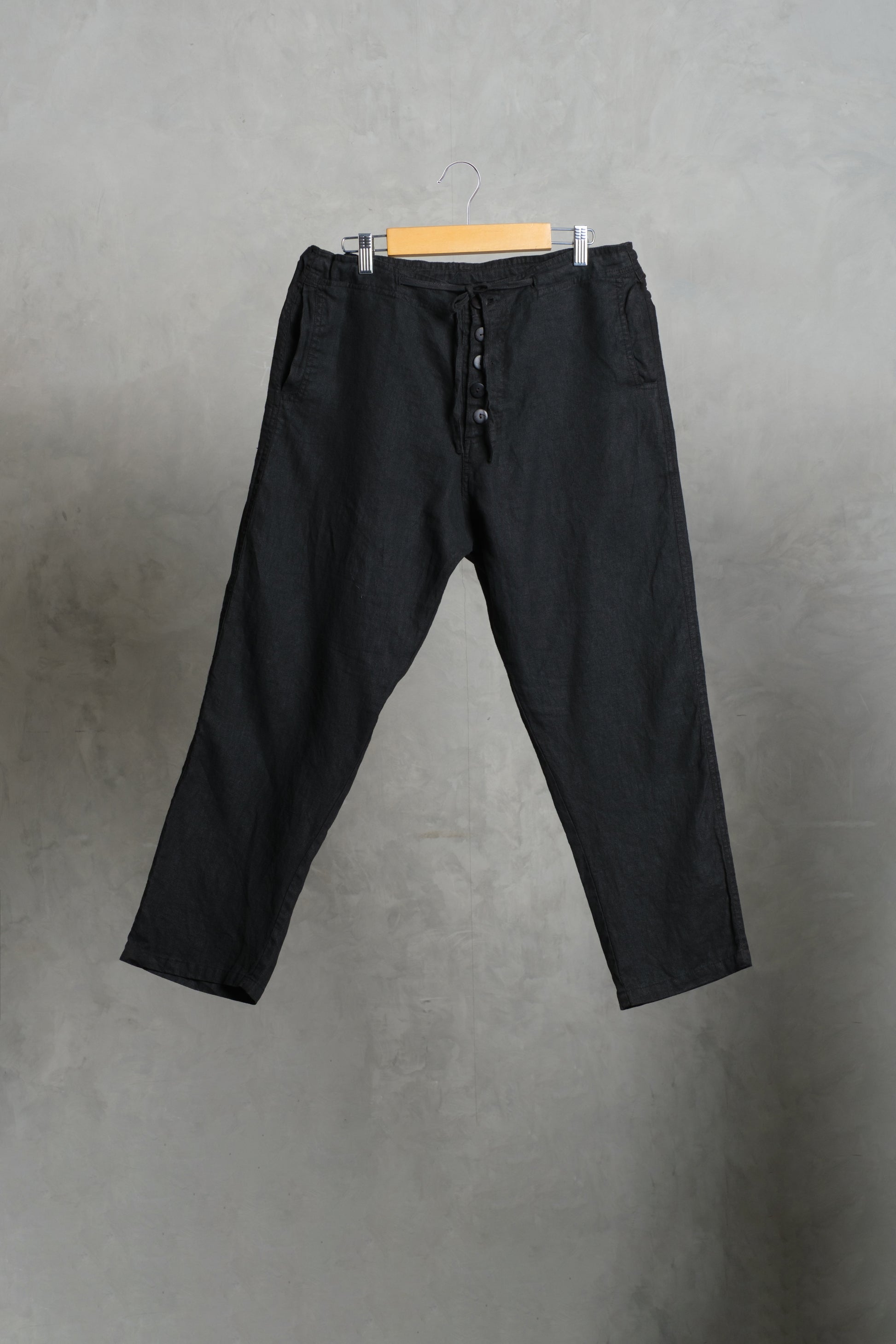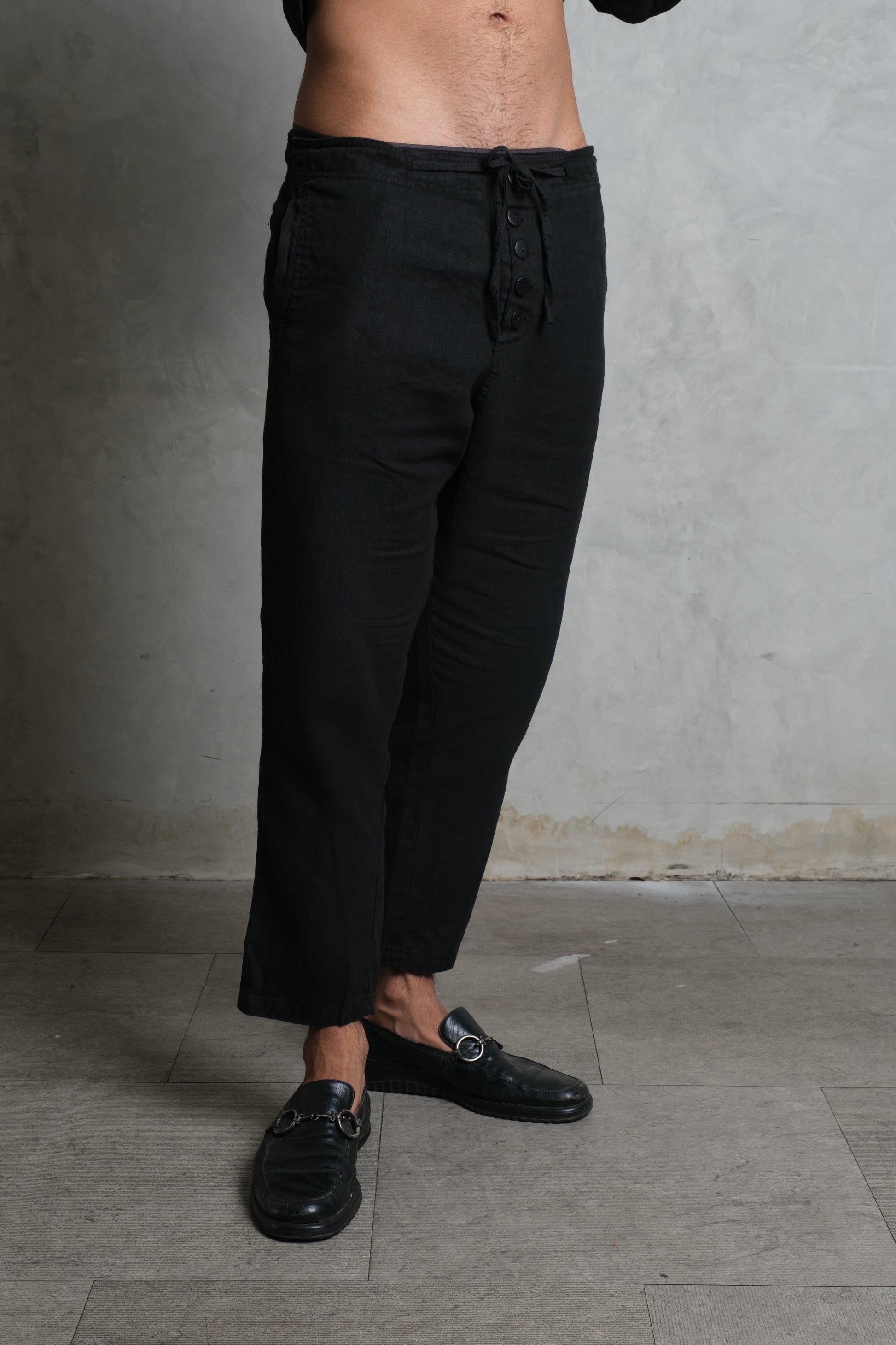 The KERALA Pants are cut from French linen with a relaxed yet structured fit that embodies effortless style. A button-front fly with tie closure defines the waist, blending function with artisanal detail. The tapered leg falls just above the ankle, creating a clean, contemporary line, while side and back pockets add subtle utility. Designed in earthy tones, the KERALA Pants carry the signature sprezzatura of Muda js. — relaxed, refined, and made for modern versatility.