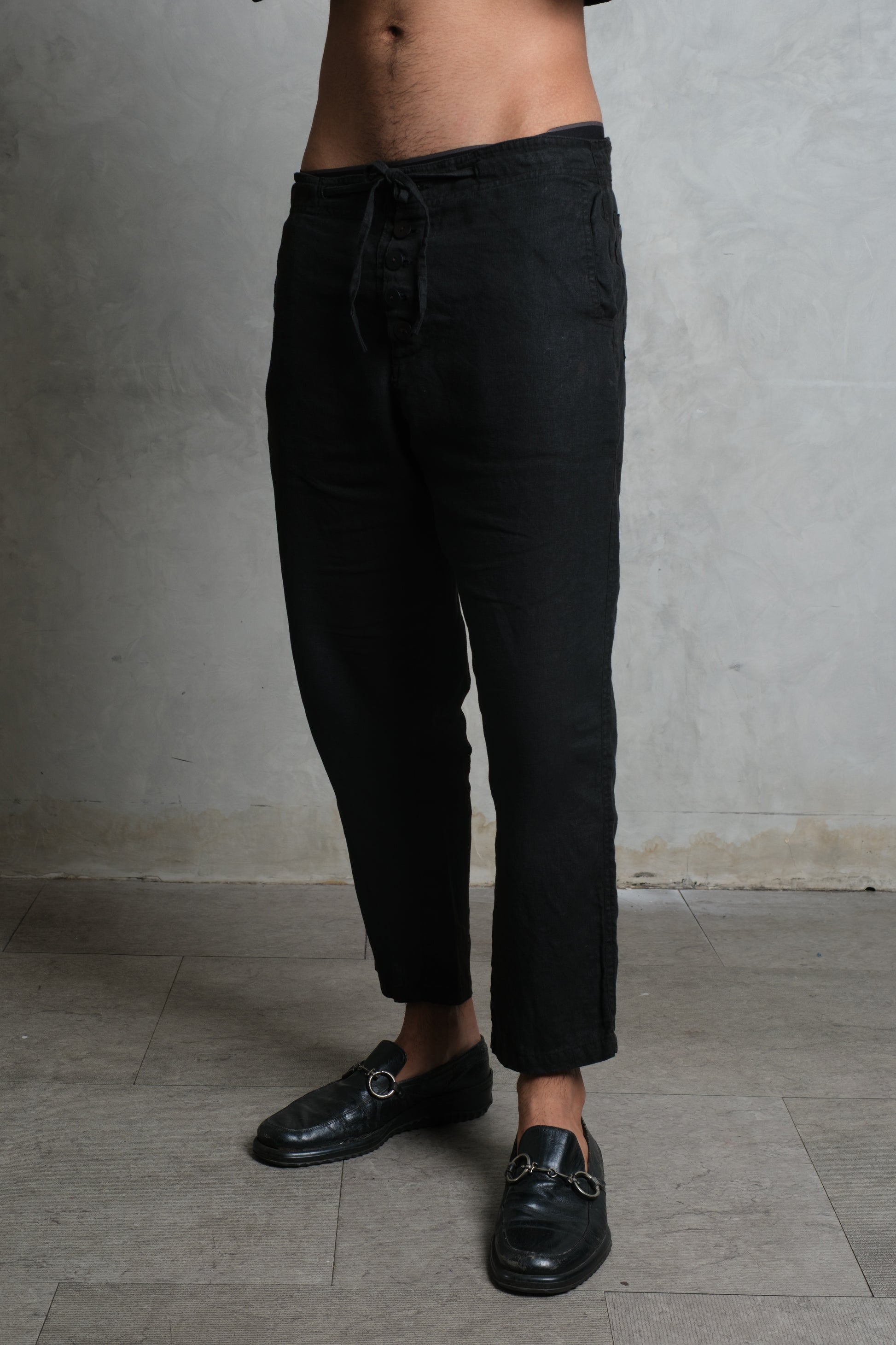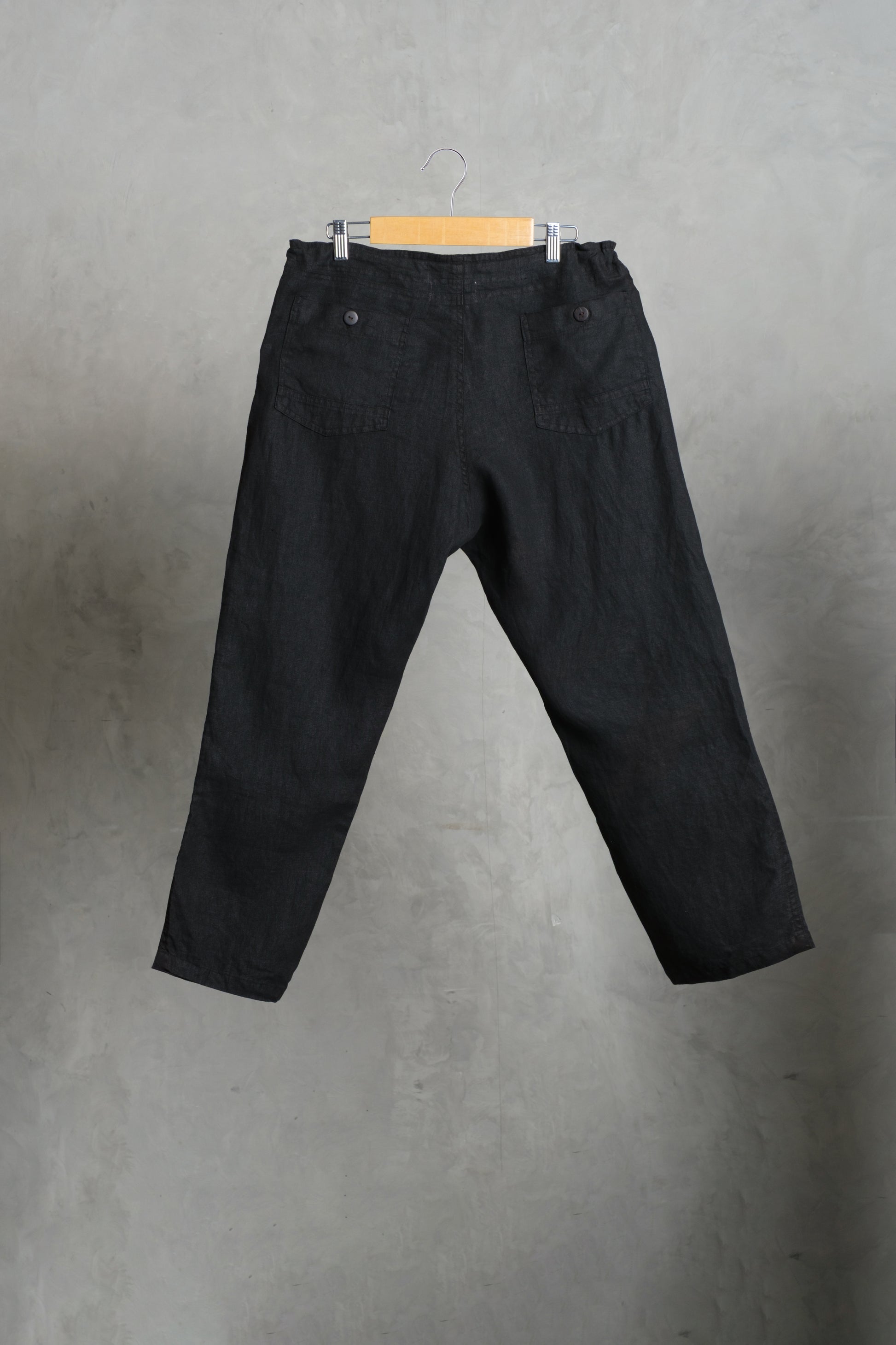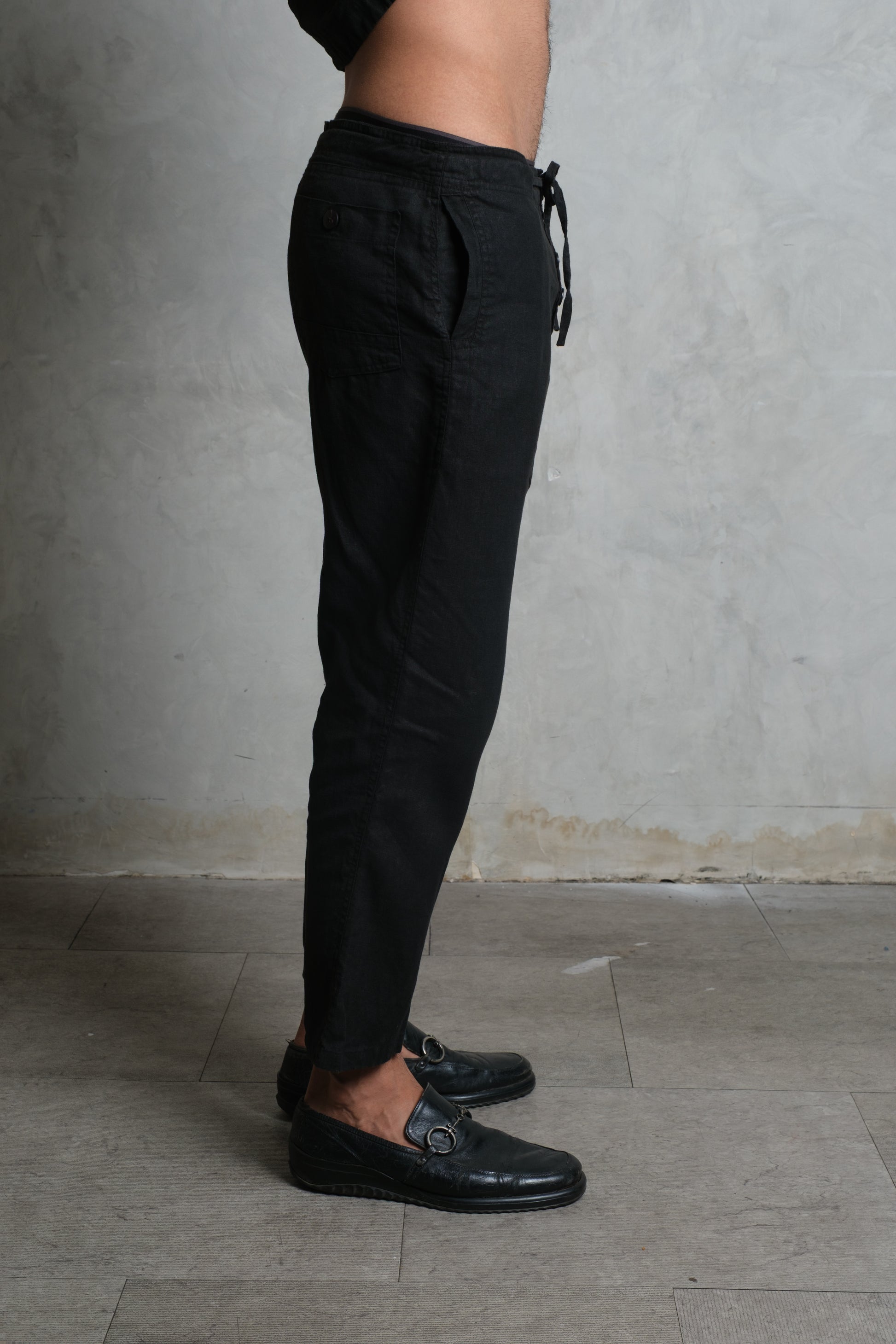 The KERALA Pants are cut from French linen with a relaxed yet structured fit that embodies effortless style. A button-front fly with tie closure defines the waist, blending function with artisanal detail. The tapered leg falls just above the ankle, creating a clean, contemporary line, while side and back pockets add subtle utility. Designed in earthy tones, the KERALA Pants carry the signature sprezzatura of Muda js. — relaxed, refined, and made for modern versatility.