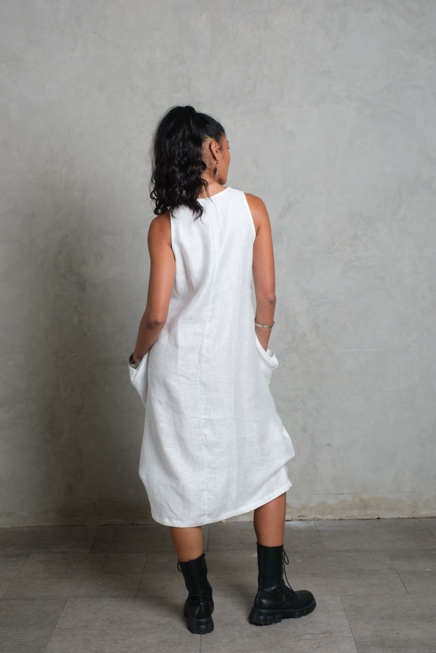 The KIRANA Dress is a relaxed, effortlessly stylish piece designed for casual ease. Cut in a loose silhouette with a sleeveless shape and deep side pockets, it moves with a natural flow that feels both modern and comfortable. Available in three finishes — Apache Black, pure Snow White, and Smoke tie-dye — each variation carries its own character while staying true to the dress’s understated elegance. A versatile staple, the KIRANA is made for everyday wear with an effortless, free-spirited edge.