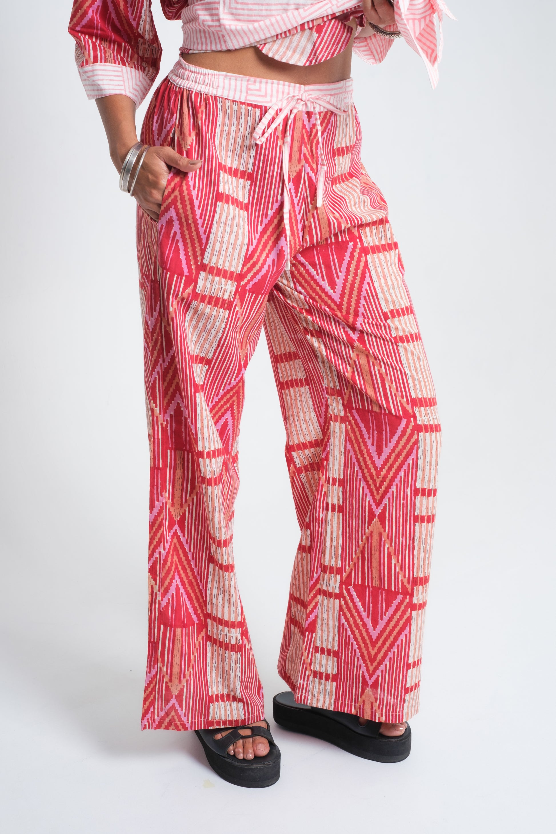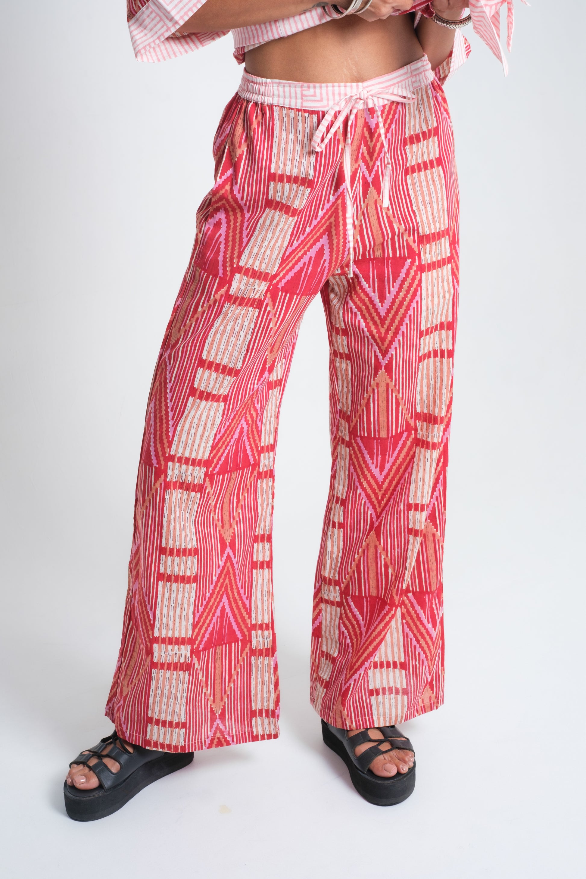 The ZEST Pants are made from organic cotton sourced from northern India, where rich textile traditions shape some of the world’s finest natural fabrics. In Bali, cottage-industry artisans cut and sew each pair before the fabric is finished by hand. Some are dyed with natural plant pigments to create a soft ombré gradient, while others are hand block-printed with carved wooden blocks in bold, geometric patterns. Each piece is one of a kind, carrying both India’s heritage and Bali’s free-spirited artistry.