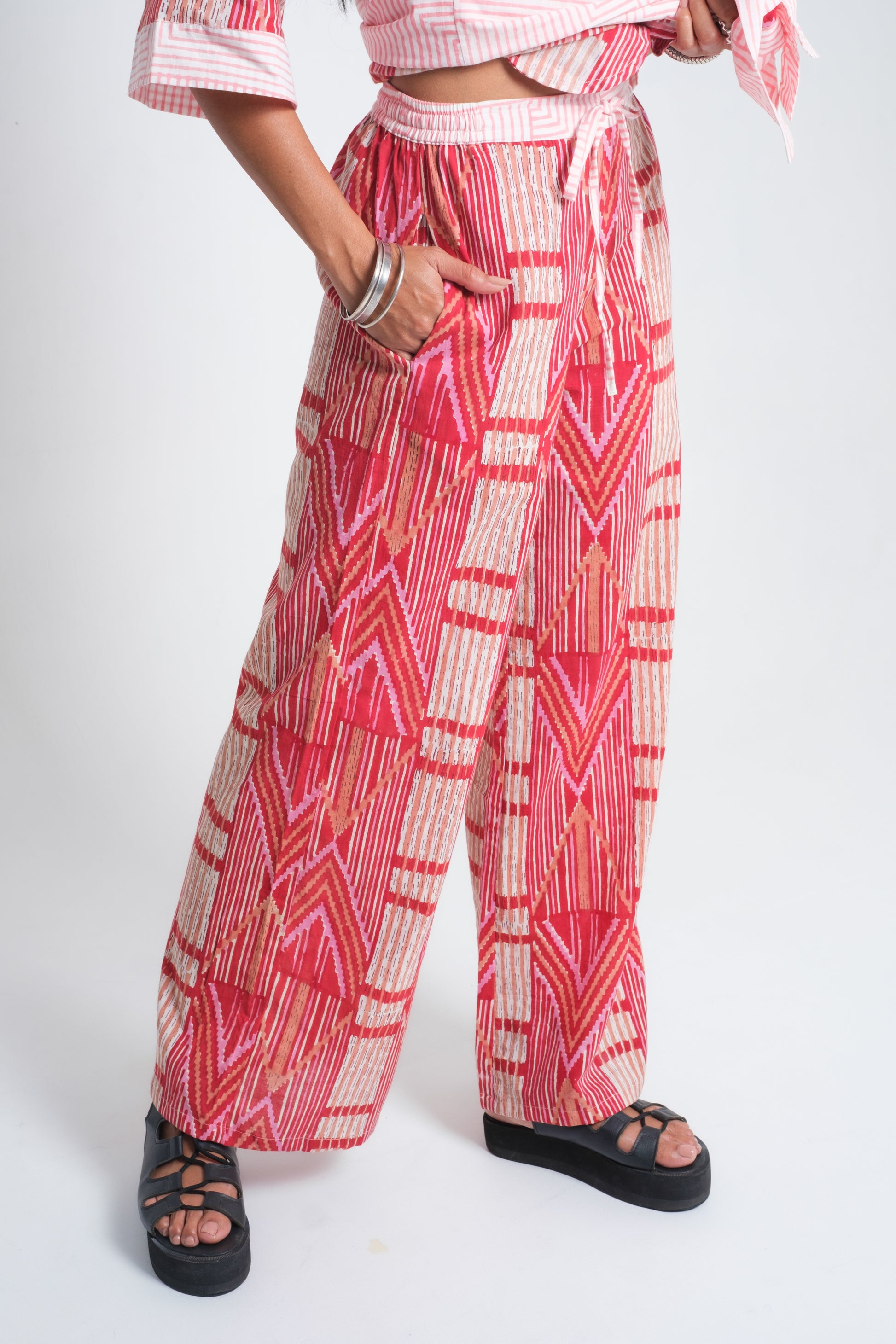 The ZEST Pants are cut in a relaxed wide-leg silhouette from 100% organic cotton, making them light, breathable, and effortless to wear. Available in two artisanal finishes — a natural plant-pigment ombré that fades in soft gradients, and a bold hand block-printed pattern pressed with carved wooden blocks — each pair carries its own soul. Designed for movement and ease, the ZEST embodies the free spirit: expressive, comfortable, and undeniably unique.
